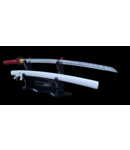 Musashi katana zwaard Lengte: 99 cm Gewicht: 850 gram - Hoogwaardig carbon staal - Vlijmscherp - Full tang - Demontabel - Schede afgewerkt met piano glanslak - Inclusief zwaardenfoudraal - Volledig functioneel zwaard (ready for Battle)